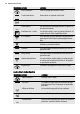 LIETUVIŲ Eil. Nr. Jutiklio lau‐ kas 11 — Funkcija Ekranas B C E D Pastaba Rodo esamus prietaiso nustatymus. Ekranas A 47 A) B) C) D) E) Kaitinimo funkcija Paros laikas Kaitinimo indikatorius Temperatūra Funkcijos Trukmė ir Pabaiga Kiti ekrane rodomi indikatoriai Simbolis Funkcija Laikmatis Funkcija veikia. Paros laikas Ekrane rodomas paros laikas. Trukmė Ekrane rodomas maisto gaminimui būtinas laikas. Pabaiga Ekrane rodoma laikas, kada pasibaigs gaminimo laikas.