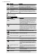 ROMÂNA Picto‐ gramă Funcţie Descriere Durata Pentru a seta timpul de funcţionare a aparatului (max. 23 h şi 59 min). Sfarsit la Pentru a seta perioada de decuplare a unei funcţii de gătire (max. 23 h şi 59 min). Dacă setaţi timpul aferent unei funcţii a ceasului, numărătoarea inversă începe după 5 secunde. Dacă utilizaţi funcţiile ceasului Durata şi Sfarsit la , aparatul dezac‐ tivează elementele de încălzire după 90 % din timpul setat.
