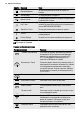 www.electrolux.com Симбол Подмени Опис Display Brightness Ја приспособува осветленоста на екранот во степени. Set Language Го подесува јазикот на екранот. Buzzer Volume Ја прилагодува јачината на тоновите на притискање и сигналите во степени. Key Tones Го вклучува и исклучува тонот на допирните полиња. Не може да се исклучи тонот на допирното поле за ВКЛУЧЕНО/ИСКЛУЧЕНО. Alarm/Error Tones Ги вклучува и исклучува тоновите за тревога.
