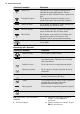 SHQIP Simbo Nënmenyja li 9 Përshkrimi Nxeh + Mbaj Kur është NDEZUR, ju mund të aktivizoni këtë funksion kur aktivizoni një funksion nxehjeje. Kohë shtesë Aktivizon dhe çaktivizon funksionin. Kontrasti i ekranit Rregullon kontrastin e ekranit me gradë. Drita e ekranit Rregullon dritën e ekranit me gradë. Cilëso gjuhën Vendos gjuhën e ekranit. Volumi i ziles Rregullon volumin e toneve të shtypjes dhe sinjaleve me gradë. Tingujt e butonave Aktivizon dhe çaktivizon tonin e fushave me prekje.