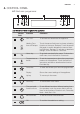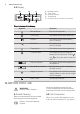 www.electrolux.com 4.2 Display A B C E D A) B) C) D) E) Heating function Time of day Heat-up indicator Temperature Duration time or end time of a function Other indicators of the display: Symbol Function Minute Minder The function operates. Time of day The display shows the current time. Duration The display shows the necessary time for cooking. End Time The display shows when the cooking time is complete. Temperature The display shows the temperature.
