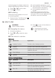 www.electrolux.com Symbol Submenu Description Heat + Hold When ON, in the Select Options window you can choose the function: Heat + Hold. Time Extension Activates and deactivates the time extension function. Display Contrast Adjusts the display contrast by degrees. Display Brightness Adjusts the display brightness by degrees. Set Language Sets the language for the display. Buzzer Volume Adjusts the volume of press-tones and signals by degrees.