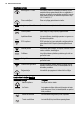 www.electrolux.com Eil. Nr. Jutiklio lau‐ kas 11 — Funkcija Ekranas Rodo esamus prietaiso nustatymus. Ekranas A B C E D Pastaba A) B) C) D) E) Kaitinimo funkcija Paros laikas Kaitinimo indikatorius Temperatūra Funkcijos Trukmė ir Pabaiga Kiti ekrane rodomi indikatoriai Simbolis Funkcija Laikmatis Funkcija veikia. Paros laikas Ekrane rodomas paros laikas. Trukmė Ekrane rodomas maisto gaminimui būtinas laikas. Pabaiga Ekrane rodoma laikas, kada pasibaigs gaminimo laikas.