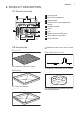 ENGLISH 3. PRODUCT DESCRIPTION 3.1 General overview 1 2 3 4 5 6 5 4 10 3 7 2 1 8 1 2 3 4 5 6 7 8 9 10 Control panel Electronic programmer Water drawer Socket for the core temperature sensor Heating element Lamp Fan Steam generator with cover Shelf support, removable Shelf positions 9 3.2 Accessories Wire shelf For cookware, cake tins, roasts. Baking tray For cakes and biscuits. Grill- / Roasting pan To bake and roast or as a pan to collect fat.