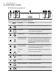 ENGLISH 9 4.2 Display A B C E A) Oven function symbol B) Number of the oven function / programme C) Indicators for the clock functions (refer to the table "Clock functions") D) Clock / residual heat display E) Temperature / time of day display D Other indicators of the display: Symbol / / Name Description Automatic programme You can choose an automatic pro‐ gramme. My favourite programme The favourite programme operates. kg / g An automatic programme with weight input operates.