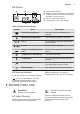www.electrolux.com 4. CONTROL PANEL 4.1 Electronic programmer 1 2 3 4 5 6 7 8 9 10 11 Use the sensor fields to operate the appliance. Sensor Field 1 2 3 4 5 6 7 8 9 10 11 - Function Description ON / OFF To activate and deactivate the appliance. OPTIONS To set an oven function, a cleaning function or an automatic programme. OVEN LIGHT To activate or deactivate the oven lamp.