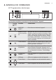 FRANÇAIS 9 4. BANDEAU DE COMMANDE 4.1 Programmateur électronique 1 2 3 4 5 6 7 8 9 10 11 Les touches sensitives permettent de faire fonctionner l'appareil. Touche sensiti‐ ve Fonction Commentaire 1 MARCHE/ ARRET Pour allumer et éteindre l'appareil. 2 Modes De Cuis‐ Appuyez une fois sur la touche sensitive pour son ou VarioGui‐ choisir un mode de cuisson ou le menu : Vario‐ de Guide . Appuyez à nouveau sur la touche sen‐ sitive pour naviguer entre les menus : Modes De Cuisson, VarioGuide .