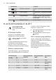 www.electrolux.com Szim‐ Menüpont bó‐ lum VarioGuide Alkalmazás Az ajánlott sütőbeállításokat tartalmazza az ételek széles köréhez. Válassza ki az ételt, majd indítsa el a sütési folyamatot. A hőmér‐ sékleti értékek és sütési időtartamok csak tájé‐ koztatásként szolgálnak a jobb eredmény elé‐ rése érdekében, és módosíthatóak. A valós ér‐ tékek a receptektől, a felhasznált összetevők minőségétől és mennyiségétől függenek.