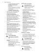 www.electrolux.com • • • • • • • • óvatos, hogy ne érjen a fűtőelemekhez. 8 évesnél fiatalabb gyermekek kizárólag folyamatos felügyelet mellett tartózkodhatnak a készülék közelében. Amikor a sütőből kiveszi vagy behelyezi az edényeket, mindig használjon konyhai edényfogó kesztyűt. Bármilyen karbantartás megkezdése előtt húzza ki a készülék hálózati dugaszát a fali aljzatból. Az izzó cseréje előtt győződjön meg arról, hogy a készülék ki van kapcsolva, hogy megelőzze áramütést.