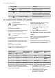 www.electrolux.com 10.5 Oprirea automată Din motive de siguranţă, aparatul se opreşte automat după o perioadă dacă o funcţie de gătire este activă şi nu modificaţi nicio setare. Temperatură (°C) Durata de oprire (h) 30 - 115 12.5 120 - 195 8.5 200 - 230 5.5 Oprirea automată nu funcţionează cu aceste funcţii: Iluminare Cuptor, Senzor,Durata, Sfarsit La. 10.