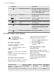 www.electrolux.com Симбол Функција Показивање времена Дисплеј показује колико дуго је функција загревања активна. При‐ тисните и истовремено да бисте ресетовали време. Рачунање Уређај израчунава време потреб‐ но за печење. Индикатор загревања Дисплеј показује висину темпера‐ туре у уређају. Индикатор брзог загре‐ Функција је активна. Скраћује вре‐ вања ме загревања. Аутоматска тежина На дисплеју се приказује да је ау‐ томатски систем мерења тежине активан или да тежина може да се промени.