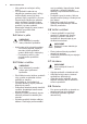 www.electrolux.com • • Vždy pečte se zavřenými dvířky trouby. Je-li spotřebič instalován za nábytkovým panelem (např. dvířky), dvířka nábytku nesmí být nikdy zavřená, když je spotřebič v provozu. Za zavřeným nábytkovým panelem může docházet k nárůstu horka a vlhka, což může následně poškodit spotřebič, byt nebo podlahu. Nezavírejte nábytkový panel, dokud spotřebič po použití zcela nevychladne. 2.4 Vaření v páře • • 2.