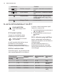www.electrolux.com Szim‐ Menüpont bó‐ lum VarioGuide Alkalmazás Az ajánlott sütőbeállításokat tartalmazza az ételek széles köréhez. Válassza ki az ételt, majd indítsa el a sütési folyamatot. A hőmér‐ sékleti értékek és sütési időtartamok csak tájé‐ koztatásként szolgálnak a jobb eredmény elé‐ rése érdekében, és módosíthatóak. A valós ér‐ tékek a receptektől, a felhasznált összetevők minőségétől és mennyiségétől függenek.