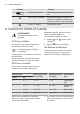www.electrolux.com Simbol / Ele‐ ment meniu VarioGuide Aplicaţie Simbol / Ele‐ ment meniu Conţine setările reco‐ mandate ale cuptoru‐ lui pentru o gamă largă de preparate. Selectaţi un preparat şi începeţi procesul de gătire. Temperatu‐ ra şi durata constituie doar recomandări pentru obţinerea unui rezultat mai bun şi acestea pot fi ajusta‐ te. Acestea depind de reţete şi de calita‐ tea şi cantitatea in‐ gredientelor utilizate. Reglează contrastul Contrast La Dis‐ afişajului în grade.