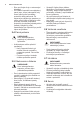www.electrolux.com Funkcia ohrevu Použitie Rozmrazovanie Túto funkciu môžete používať na rozmrazova‐ nie mrazených potravín, ako napr. zeleniny a ovocia. Čas rozmrazovania závisí od množstva a veľkosti mrazených potravín. Vlhký Horúci Vzduch Na pečenie chleba, koláčov a pečiva. Na úspo‐ ru energie počas pečenia. Aby ste dosiahli po‐ žadované výsledky pečenia, musí sa funkcia Vlhký horúci vzduch používať v súlade s tabuľ‐ kami pečenia.