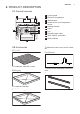 ENGLISH 3. PRODUCT DESCRIPTION 3.1 General overview 1 2 3 4 5 5 6 4 10 3 7 2 8 1 1 2 3 4 5 6 7 8 9 10 Control panel Electronic programmer Water drawer Socket for the core temperature sensor Heating element Lamp Fan Descaling pipe outlet Shelf support, removable Shelf positions 9 3.2 Accessories Wire shelf For cookware, cake tins, roasts. Baking tray To bake and roast or as a pan to collect fat. Food Sensor To measure the temperature inside the food.