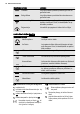 LIETUVIŲ Simbolis 47 Papildomas meniu Aprašymas Laiko parodymai Kai ĮJUNGTA, išjungus prietaisą, rodomas esamas laikas. SET + GO Kai ĮJUNGTA, lange „Pasirinkti parinktį“ galite pasi‐ rinkti funkciją SET + GO . Kaitinti + palaikyti Kai ĮJUNGTA, lange „Pasirinkti parinktį“ galite pasi‐ rinkti funkciją Kaitinti + palaikyti . Laiko pratęsimas Įjungia arba išjungia šią funkciją. Ekrano kontrastiškumas Laipsniškai nustato ekrano kontrastiškumą. Ekrano ryškumas Laipsniškai nustato ekrano ryškumą.