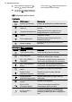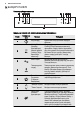 ҚАЗАҚ Сенсорлық өріс Нөмір Функция Түсіндірме Минут операторы Минут операторы -н орнату. 9 10 — 11 OK Таңдалған элементті немесе параметрді құптау. Бейнебет Құрылғының ағымдық параметрін көрсетеді. Бейнебет A B C E D A) B) C) D) E) Қыздыру функциясы Тәулік уақыты Қыздыру индикаторы Температура Ұзақтық және Аяқтау функциялары Бейнебеттегі басқа индикаторлар Белгіше Функция Минут операторы Функция жұмыс істейді. Тәулік уақыты Бейнебетте тәулік уақыты көрсетіледі.