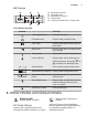 LATVIEŠU 9 4.2 Displejs A B C E D A) B) C) D) E) Karsēšanas funkcija Diennakts laiku Karsēšanas indikators Temperatūra Funkcijas darbības laiks vai beigu laiks Citi indikatori displejā: Simbols Funkcija Laika atgādinājums Funkcijas darbojas. Diennakts laiku Displejs rāda pašreizējo laiku. Darb. laiks Displejs rāda gatavošanai nepiecie‐ šamo laiku. Beigu laiks Displejs rāda laiku, kad gatavošana būs pabeigta. Temperatūra Displejā būs redzama temperatūra.