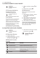 www.electrolux.com 5. ENNE ESIMEST KASUTAMIST 1. Väärtuse valimiseks vajutage HOIATUS! Vt ohutust käsitlevaid peatükke. või . 2. Kinnitamiseks vajutage 5.1 Esmane puhastamine . 5.3 Eelkuumutus Eemaldage kõik tarvikud ja eemaldatavad ahjuriiuli toed. Eelkuumutage seadet enne esimest kasutamist. Vt jaotist "Puhastus ja hooldus". 1. Valige funktsioon: Ülemine + alumine kuumutus ja maksimaalne temperatuur. 2. Laske seadmel tund aega töötada. Enne esmakordset kasutamist tuleb seade puhastada. 3.