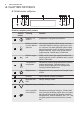 www.electrolux.com 4. VALDYMO SKYDELIS 4.1 Elektroninis valdymas 1 2 3 4 5 6 7 8 9 10 11 Prietaisą valdykite jutiklių laukais. Jutiklio laukas 1 2 3 4 5 6 7 8 - Funkcija Pastaba ĮJUNGTI / IŠ‐ JUNGTI Įjungiamas ir išjungiamas prietaisas. Kaitinimo funkci‐ jos arba Kepimo vadovas Vieną kartą palieskite jutiklio lauką, kad pasir‐ inktumėte kaitinimo funkciją arba meniu. Kepi‐ mo vadovas. Dar kartą palieskite jutiklio lauką, kad perjungtumėte meniu: Kaitinimo funkcijos, Kepimo vadovas.