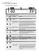 www.electrolux.com 4. VALDYMO SKYDELIS 4.1 Elektroninis valdymas 1 2 3 4 5 6 7 8 9 10 11 Prietaisą valdykite jutiklių laukais. Jutiklio laukas 1 2 3 4 5 6 7 8 - Funkcija Pastaba ĮJUNGTI / IŠ‐ JUNGTI Įjungiamas ir išjungiamas prietaisas. Kaitinimo funkci‐ jos arba Recep‐ tai Vieną kartą palieskite jutiklio lauką, kad pasir‐ inktumėte kaitinimo funkciją arba meniu. Re‐ ceptai. Dar kartą palieskite jutiklio lauką, kad perjungtumėte meniu: Kaitinimo funkcijos, Re‐ ceptai.