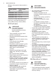 www.electrolux.com Môžete si tiež pozrieť údaje uvedené v tabuľke: Celkový príkon (W) Prierez kábla (mm²) maximálne 1 380 3 x 0.75 maximálne 2 300 3x1 maximálne 3 680 3 x 1.5 VAROVANIE! Hrozí nebezpečenstvo poškodenia spotrebiča. • Uzemňovací kábel (zeleno/žltý kábel) musí byť o 2 cm dlhší ako fázový a nulový kábel (modrý a hnedý kábel). 2.3 Používanie VAROVANIE! Hrozí nebezpečenstvo poranenia, popálenín, zásahu elektrickým prúdom alebo výbuchu.