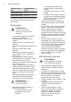 www.electrolux.com Ukupna snaga (W) Presjek kabela (mm²) maksimalno 2300 3x1 maksimalno 3680 3 x 1.5 Uzemljenje (zeleno-žuti vodič) mora biti 2 cm dulje od vodiča faze i nule (smeđi i plavi vodiči). 2.3 Upotreba UPOZORENJE! Opasnost od ozljede, opeklina, strujnog udara ili eksplozije. • • • • • • • • • • • • Ovaj uređaj namijenjen je isključivo upotrebi u domaćinstvu. Ne mijenjajte specifikacije ovog uređaja. Pazite da otvori za ventilaciju nisu blokirani.