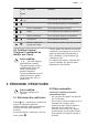 МАКЕДОНСКИ 29 4.2 Изглед на контролна табла 6 8 7 5 4 3 2 1 9 10 За да ја видите контролната плоча и позициите на ринглата вклучете го апаратот со Ракувајте со апаратот со помош на сензорските полиња. Екраните, показателите и звуците покажуваат кои функции работат. Сензо рско поле Функција Коментар ВКЛУЧЕНО / ИСКЛУЧЕНО За вклучување и исклучување на површината за готвење. Hob²Hood За вклучување и исклучување на рачниот режим на функцијата. Пауза За вклучување и исклучување на функцијата.