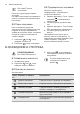 www.electrolux.com Под-мени за: Основни поставки Знак Под мени Опис Постави го времето во денот Го поставува моменталното време на часовникот. Означување на време Кога е ВКЛУЧЕНО, екранот го покажува часовникот кога ќе го исклучите апаратот. Постави + Оди Кога е ВКЛУЧЕНО, во прозорецот за Одбирање на Опции можете да ја одберете функцијата: Постави + Оди. Топлина + Задржување Кога е ВКЛУЧЕНО, во прозорецот за Одбирање на Опции можете да ја одберете функцијата: Топлина + Задржување.