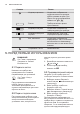 www.electrolux.com Символ Режим Индикация времени На дисплее отображается продолжительность времени работы режима нагрева. Для сброса отсчета одновременно нажмите на и . Расчет Прибор вычисляет время приготовления. Индикация нагрева На дисплее отображается температура внутри прибора. Индикация быстрого нагрева Режим включен. При этом сокращается время нагрева. Вес, автоматич.