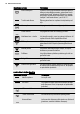 www.electrolux.com Eil. Nr. Jutiklio lau‐ kas 11 — Funkcija Ekranas Rodo esamus prietaiso nustatymus. Ekranas A B C E D Pastaba A) B) C) D) E) Kaitinimo funkcija Paros laikas Kaitinimo indikatorius Temperatūra Funkcijos Trukmė ir Pabaiga Kiti ekrane rodomi indikatoriai Simbolis Funkcija Laikmatis Funkcija veikia. Paros laikas Ekrane rodomas paros laikas. Trukmė Ekrane rodomas maisto gaminimui būtinas laikas. Pabaiga Ekrane rodoma laikas, kada pasibaigs gaminimo laikas.