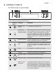 www.electrolux.com 4. VALDYMO SKYDELIS 4.1 Elektroninis valdymas 1 2 3 4 5 6 7 8 9 10 11 Prietaisą valdykite jutiklių laukais. Jutiklio laukas 1 2 3 4 5 6 7 8 - Funkcija Pastaba ĮJUNGTA / IŠ‐ JUNGTA Įjungiamas ir išjungiamas prietaisas. Kaitinimo funkci‐ jos arba Kepimo vadovas Vieną kartą palieskite jutiklio lauką, kad pasir‐ inktumėte kaitinimo funkciją arba meniu: Kepi‐ mo vadovas. Dar kartą palieskite jutiklio lauką, kad perjungtumėte meniu: Kaitinimo funkcijos, Kepimo vadovas.
