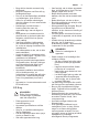 www.electrolux.com • • • • • • • • Inden du udfører vedligeholdelse, skal apparatet afbrydes fra lysnettet. Se efter, at der er slukket for apparatet, inden pæren skiftes. Ellers er der risiko for elektrisk stød. Undlad at bruge en damprenser til at rengøre apparatet. Brug ikke skrappe slibende rengøringsmidler eller skarpe metalskrabere til at rengøre ovnruden. De kan ridse overfladen, med det resultat, at glasset knuses.