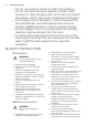 ENGLISH fuses removed from the holder), earth leakage trips and contactors. • The electrical installation must have an isolation device which lets you disconnect the appliance from the mains at all poles. The isolation device must have a contact opening width of minimum 3 mm. • Fully close the appliance door, before you connect the mains plug to the mains socket. • This appliance complies with the E.E.C. Directives. • 2.3 Use WARNING! Risk of injury, burns and electrical shock or explosion.