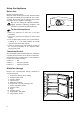 Using the Appliance Before Use Remove all securing tapes. Wash the inside of the appliance with lukewarm water with a little bicarbonate of soda added (5 ml to 0,5 litre of water). Do not use soap or detergent as the smell may linger. Dry the appliance thoroughly. Do not use detergents, abrasive powders, highly perfumed cleaning products, wax polishes or products containing alcohol. F To Start the Appliance 1. Allow the appliance to stand for 2 hrs after installation. 2.