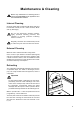 Maint enance & Cleaning Before any maintenance of cleaning work is carried out DISCONNECT the appliance from the ELECTRICITY SUPPLY. Internal Cleaning Clean the inside and accessories with warm water and bicarbonate of soda (5 ml to 0.5 litre of water). Rinse and dry thoroughly. Do not use detergents, abrasive powders, highly perfumed cleaning products, wax polishes or cleaning products containing bleach or alcohol.