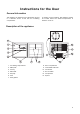 Ins tr uctions f or the User General information This appliance is desiged for the refrigeration of food in a domestic home. It also has an ice-making compartment. To ensure correct operation, this appliance should be located where the ambient temperature is between 12-32 °C Description of the appliance 1. 2. 3. 4. 5. 6. 7. Ice-making compartment Data plate Ice tray Wire shelf Drip tray Feet Door gasket 8. 9. 10. 11. 12. 13.