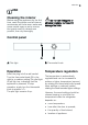 electrolux 9 USE Cleaning the interior Before using the appliance for the first time, wash the interior and all internal accessories with luke-warm water and some neutral soap so as to remove the typical smell of a brand-new product, then dry thoroughly. Do not use detergents or abrasive powders, as these will damage the finish. Control panel A B A. Pilot light B. Thermostat knob Operation Temperature regulation Insert the plug into the wall socket.