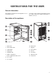 INS TR UCTIONS F OR THE USER General information This appliance is designed for the refrigeration of food in a domestic home. To ensure correct operation, the appliance should be located where the ambient temperature is between 16-32 °C. Description of the appliance 1. Glass shelf 10. Bottle shelf 2. Defrost water drain 11. Egg tray 3. Salad drawer 12. Air circulation 4. Rating Plate 13. Air vent 5. Adjustable feet 14. Condenser 6. Butter compartment 15. Evaporator tray 7.