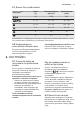 www.electrolux.com Проблем и код на алар‐ Възможна причина и решение ма Програмата не се включ‐ ва. • • • • Уредът не се пълни с во‐ да. На екрана се появява . • • • • • Уредът не източва вода‐ та. На екрана се появява . • • • • Устройството против на‐ воднение работи. На екрана се появява Уверете се, че уредът е заземен. Натиснете Start. Ако е настроен отложен старт, отменете настрой‐ ката или изчакайте края на преброяването.
