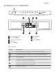 www.electrolux.com Indikatorius Aprašymas Druskos indikatorius. Šis indikatorius visada yra išjungtas, kol veikia programa. Skalavimo priemonės indikatorius. Šis indikatorius visada yra išjung‐ tas, kol veikia programa. EnergySaver indikatorius. 5.