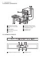 LIETUVIŲ 3. GAMINIO APRAŠYMAS 1 2 11 10 1 2 3 4 5 6 9 8 7 6 Vidurinis purkštuvas Apatinis purkštuvas Filtrai Techninių duomenų plokštelė Druskos talpykla Oro anga 5 7 8 9 10 11 4 3 Skalavimo priemonės dalytuvas Plovimo priemonių dalytuvas Stalo įrankių krepšys Apatinis krepšys Viršutinis krepšys 4.