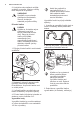 www.electrolux.com v bubnu. 1 2 2. Odstraňte horní část komory na přísady, abyste usnadnili čištění, a vypláchněte ji pod tekoucí teplou vodou, abyste odstranili jakékoliv stopy nahromaděného pracího prostředku. Po vyčištění vraťte horní část zpět na místo. 12.7 Čištění vypouštěcího čerpadla VAROVÁNÍ! Vytáhněte zástrčku ze síťové zásuvky. Filtr vypouštěcího čerpadla pravidelně kontrolujte a čistěte. Vypouštěcí čerpadlo vyčistěte, když: • Spotřebič nevypouští vodu. • Buben se neotáčí.