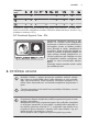 www.electrolux.com 8.2 Ierīce bērnu aizsardzībai 8.3 Skaņas signāli Šī iespēja neļauj bērniem spēlēties ar vadības paneli. Skaņas signāls atskan, ja: • Lai ieslēgtu/izslēgtu šo iespēju, un skariet vienlaicīgi taustiņus, līdz indikators iedegas/nodziest. Ieslēdziet šo iespēju pēc pieskaršanās taustiņam : taustiņi iz nobloķēti (izņemot taustiņu • Programma tiek pabeigta. • Ierīces darbībā radušies traucējumi.