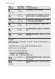 中文 程序 衣物量 能耗(千瓦 (公斤) 时) 标准 60°C 棉织物 标准 40°C 棉织物 用水量 (升) 程序大约持 续时间(分 钟) 11 残留水分 (%)1) 4,5 0.75 51 173 52 4,5 0.66 51 171 52 1) 脱水阶段结束时。 2) 某些型号不提供。 关闭模式(瓦) 待机模式(瓦) 0.05 0.05 上表给出的信息符合欧盟委员会法规 1015/2010 有关实施 2009/125/EC 指令的要求。 7. 选项 7.1 Temperature • 设置此选项可更改默认温度。 • 标志 = 冷水。 • 显示屏上将显示设定的温度。 • 7.