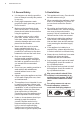 6 www.electrolux.co.th www.electrolux.com 1.3 General Safety 1.4 Installation ● It is dangerous to alter the specifica- ● This appliance is heavy. Care should tions or attempt to modify this product in any way. ● During high temperature wash program the door glass may get hot. Do not touch it! ● Make sure that small pets do not climb into the drum. To avoid this, please check inside the drum before using the appliance.