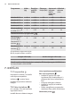 www.electrolux.com 14. TEHNIČNI PODATKI Mera Širina/višina/globina/ skupna globina 400 mm/ 890 mm/ 600 mm/ 600 mm Električna povezava Napetost Skupna moč Varovalka Frekvenca 230 V 2200 W 10 A 50 Hz Stopnja zaščite pred vstopom trdih delcev in IPX4 vlage, kar zagotavlja zaščitni pokrov, razen v pri‐ meru, kjer nizkonapetostna oprema nima zaščite pred vlago.