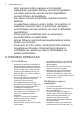 www.electrolux.com Dodatne funkcije ožemanja: 7.3 Predpranje Brez ožemanja • • • • To funkcijo nastavite za izklop vseh faz ožemanja. Na voljo je le faza črpanja. Zasveti ustrezen indikator. To funkcijo nastavite za zelo občutljive tkanine. Pri fazah izpiranja je uporabljene več vode za nekatere programe pranja. S to funkcijo lahko programu pranja dodate fazo predpranja. To funkcijo uporabite pri izredno umazanem perilu. Ko nastavite to funkcijo, se trajanje programa podaljša.