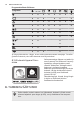 www.electrolux.com Индикатор 38 4) 1) ■3) ■3) ■ ■ ■ ■ ■3) ■ 1) ■ ■3) ■ ■3) 1) Қол жетімді болса. 2) Ең қысқа: кірді жаңартуға арналған. 3) Бағдарламаның әдепкі уақыты. 4) Ең ұзақ: Бағдарламаның ұзақтығын баяу көбейткен кезде пайдаланылатын қуат мөлшері азаяды. Оңтайландырылған қыздыру циклы пайдаланылатын қуат мөлшерін азайтады және ұзақ бағдарламаны қолданғанда, жуу нәтижесі өзгермейді (әсіресе қалыпты кірлеген кірлерде).